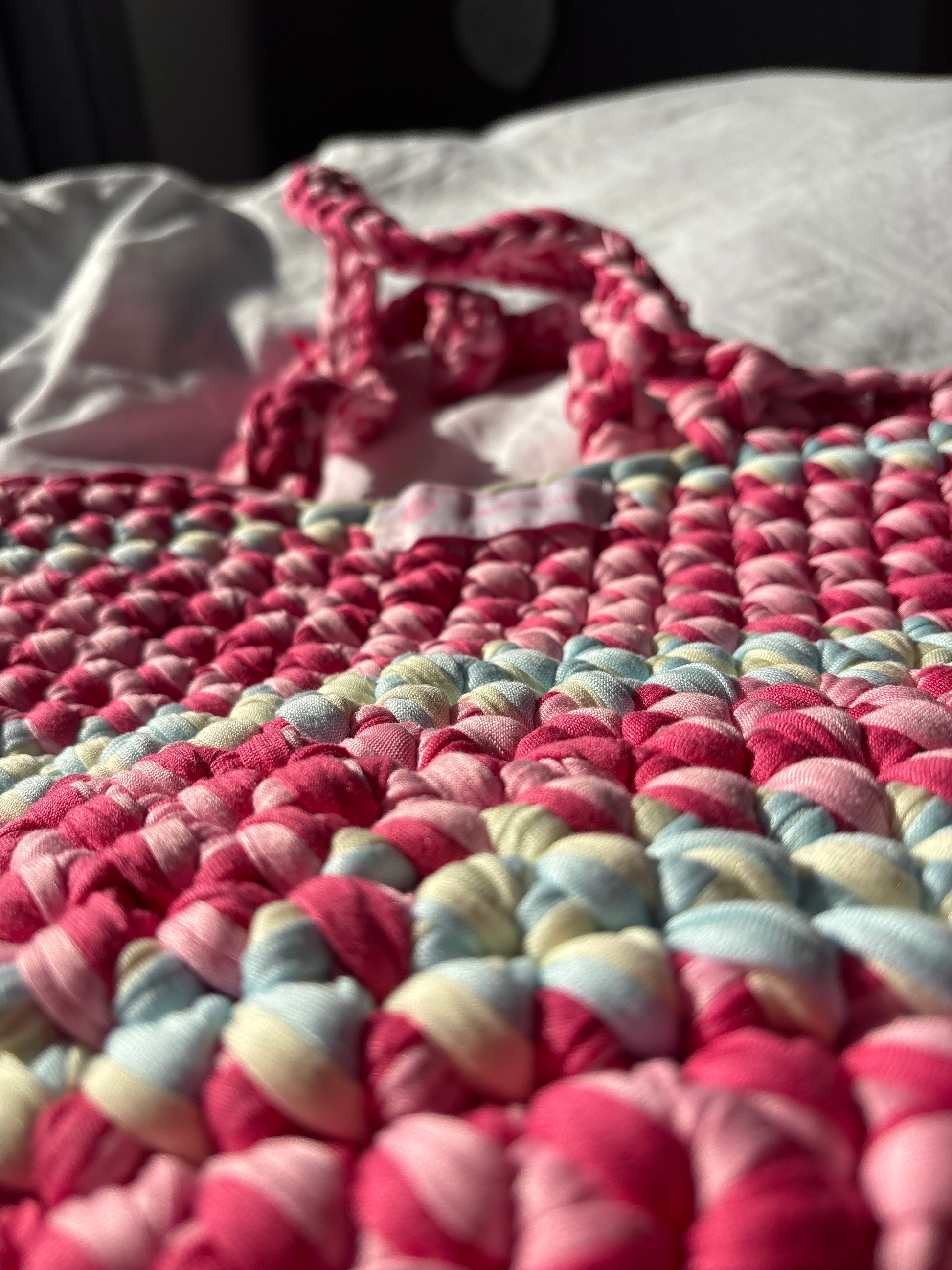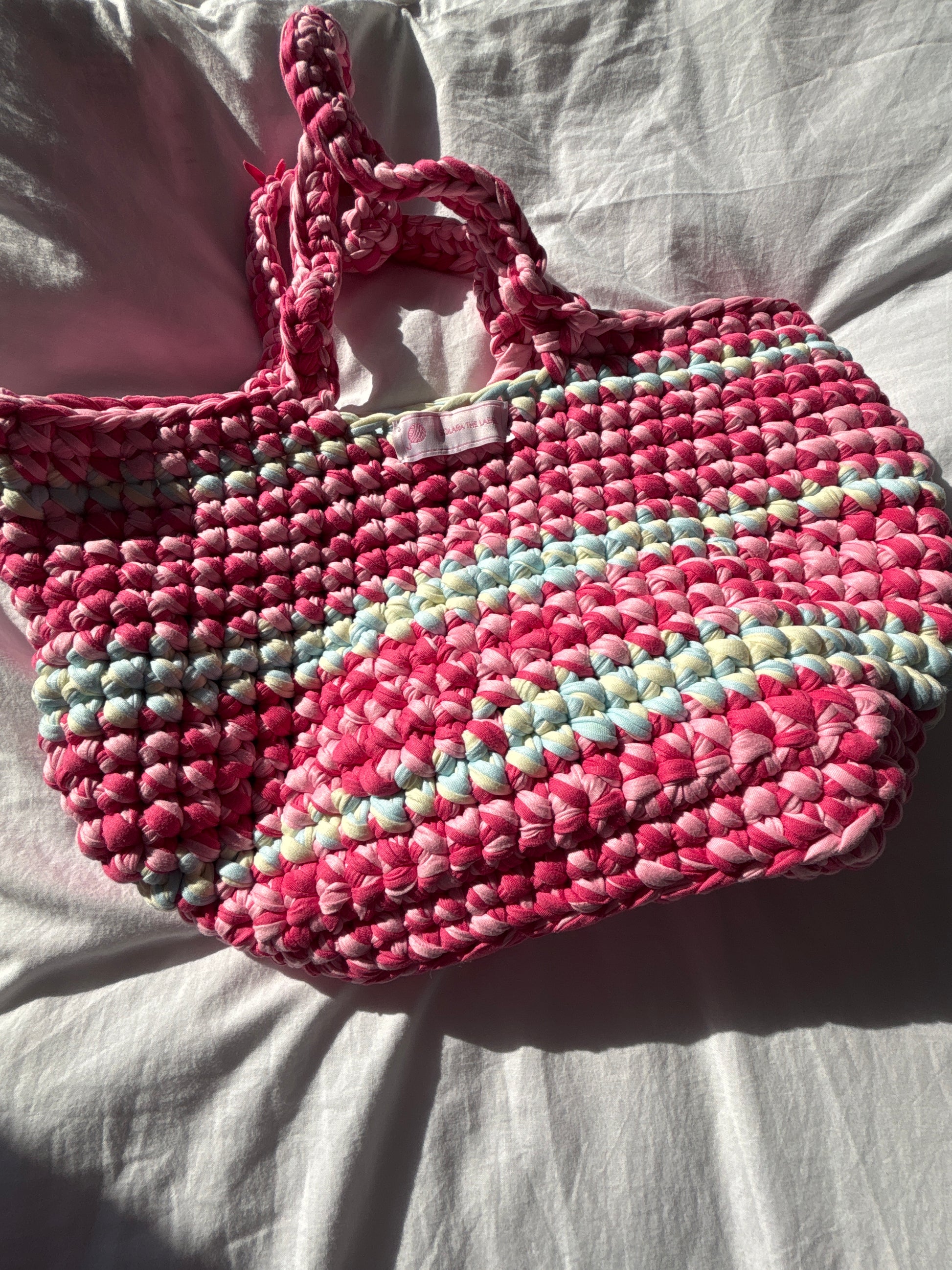 Ready to chase sunsets, dance barefoot, and soak up every sunbeam? ☀️ The Cabo Carry-All is your go-to crochet tote for beach days, market strolls, and festival adventures. Handmade with love using chunky T-shirt yarn in vibrant shades of hot pink, blush, and pastel rainbow twists 🌈 — it’s giving vacay mode always on.