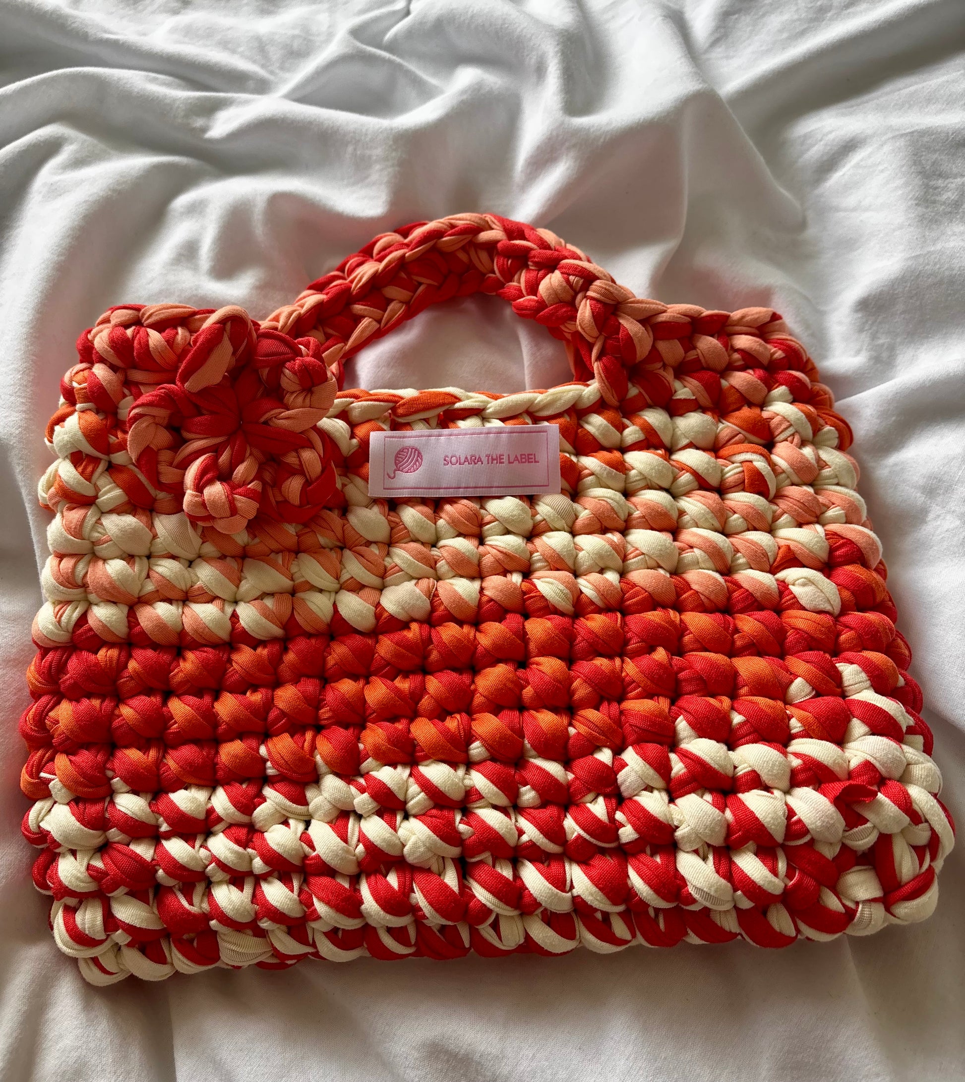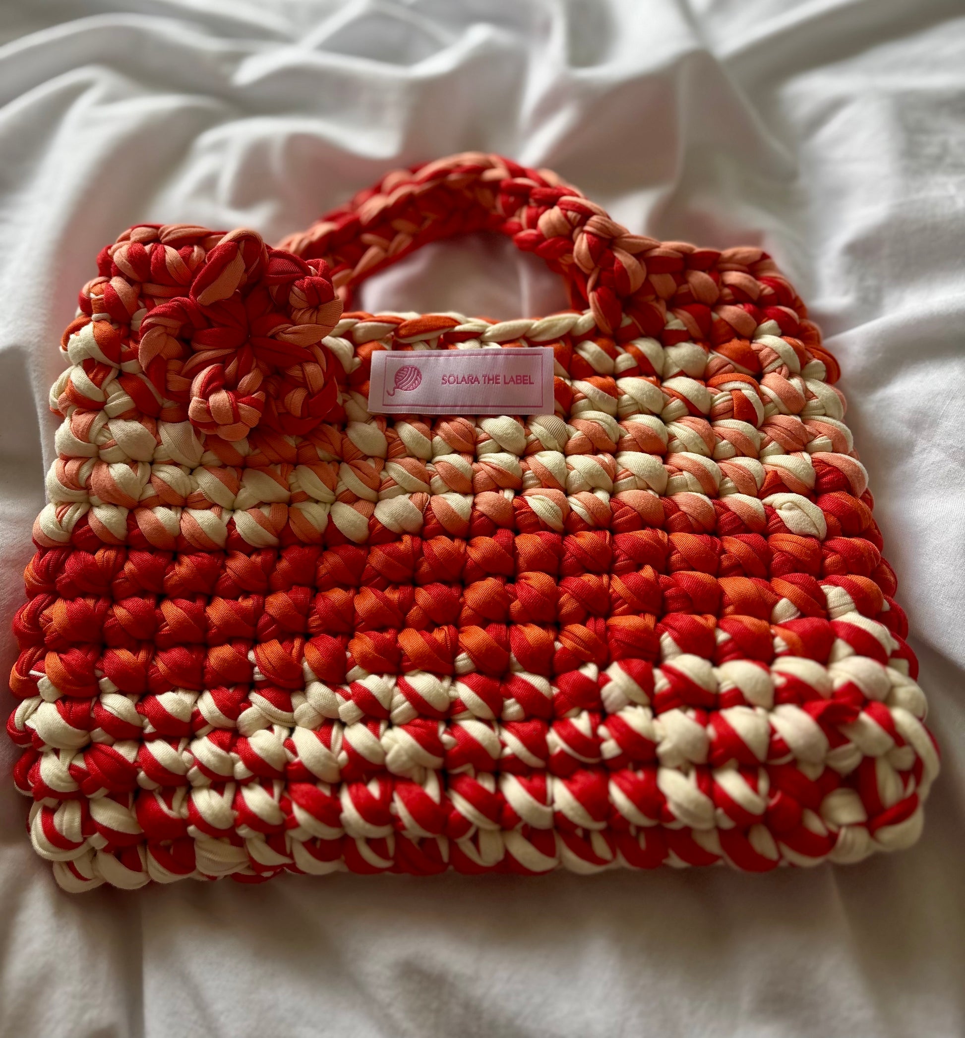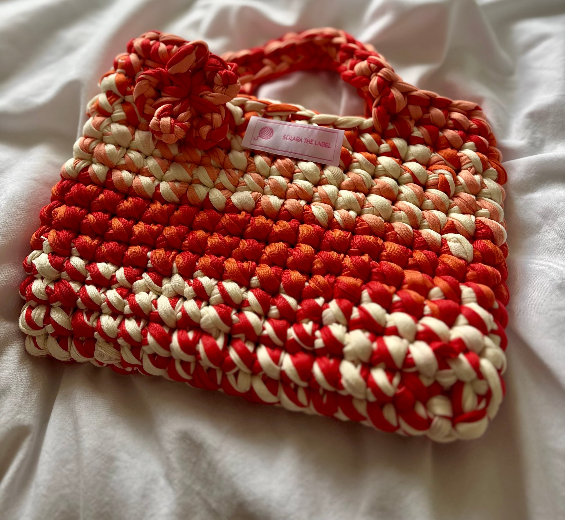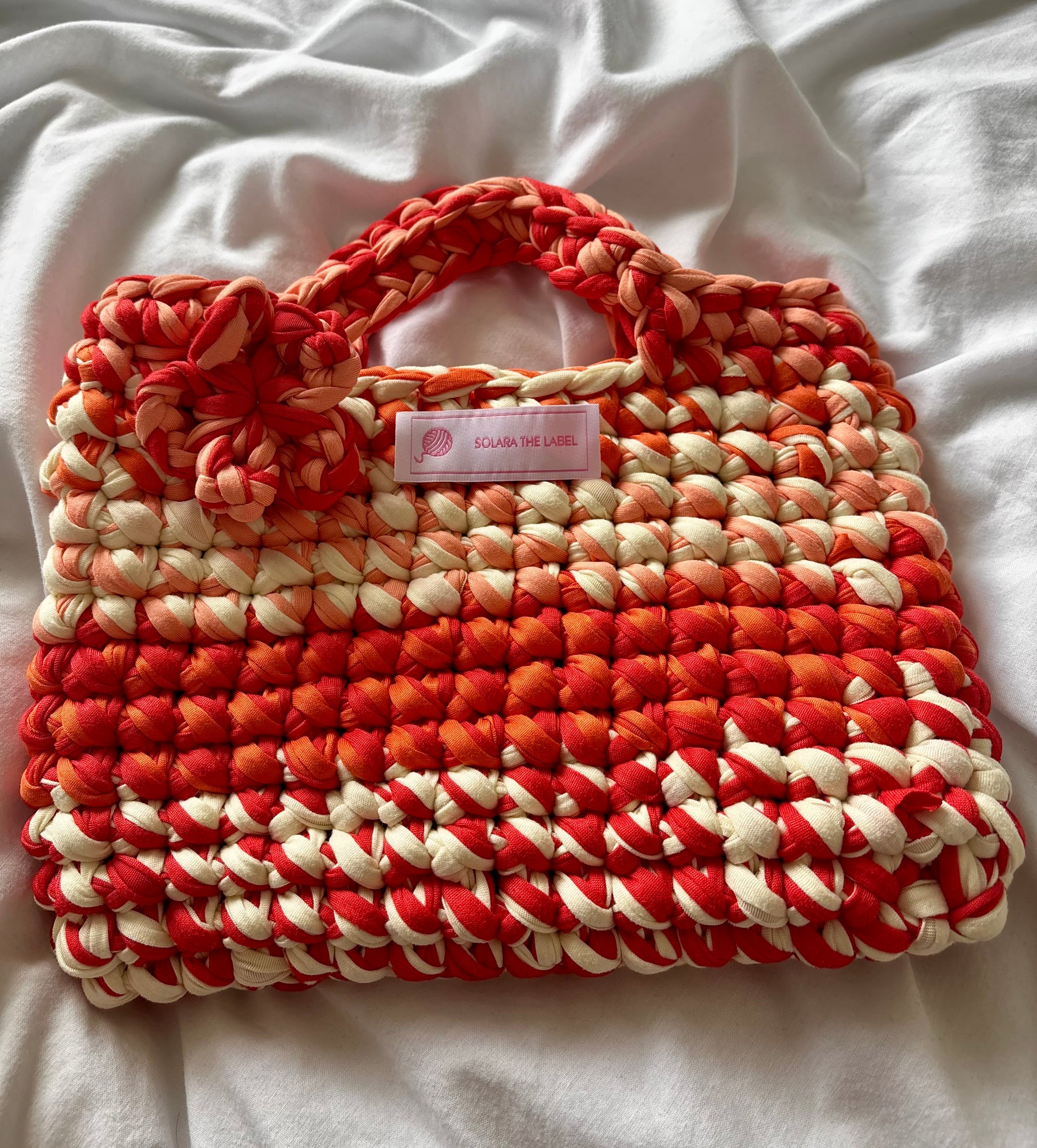 Handmade using eco-conscious T-shirt yarn, Fiesta Flame is soft yet sturdy, perfect for long summer days, spontaneous beach trips, and nights that turn into mornings. Whether you’re strolling through a market, heading to a gig, or jetting off on holiday, this bag turns heads and sparks joy. 💃✈️