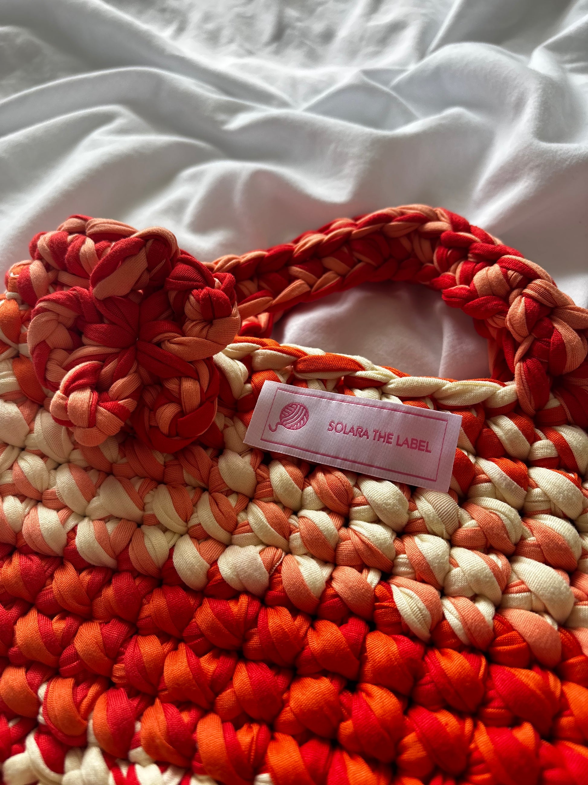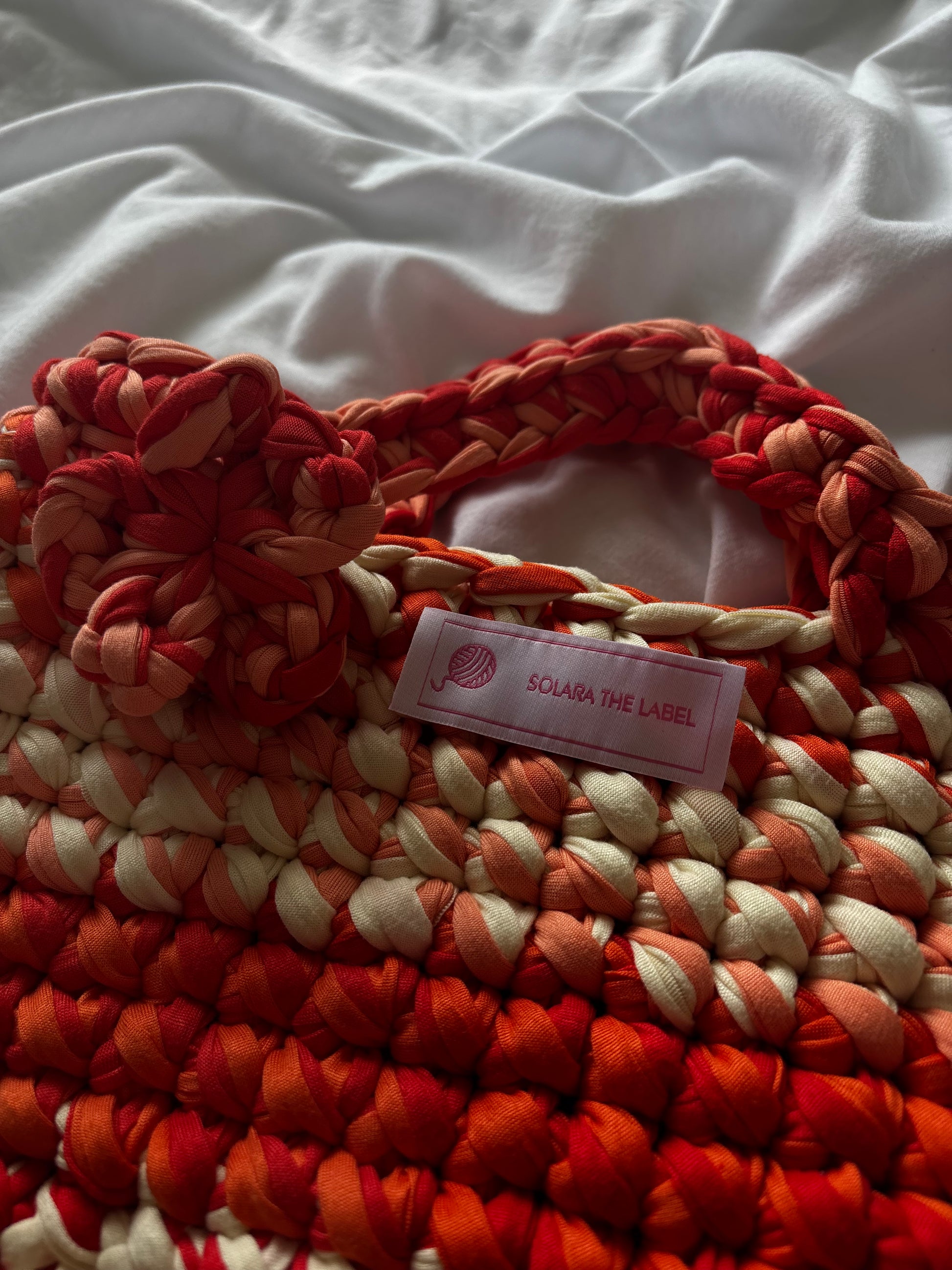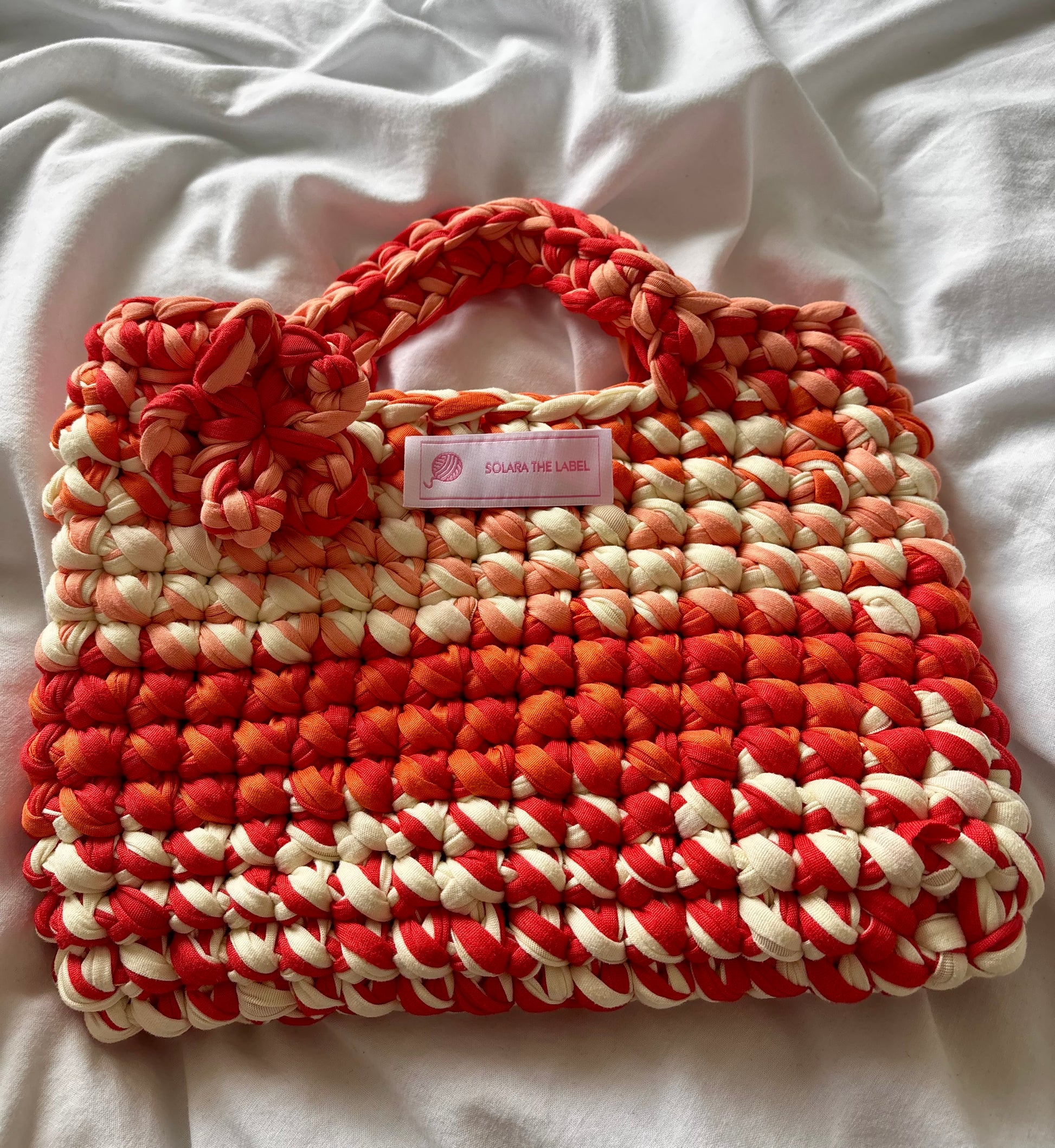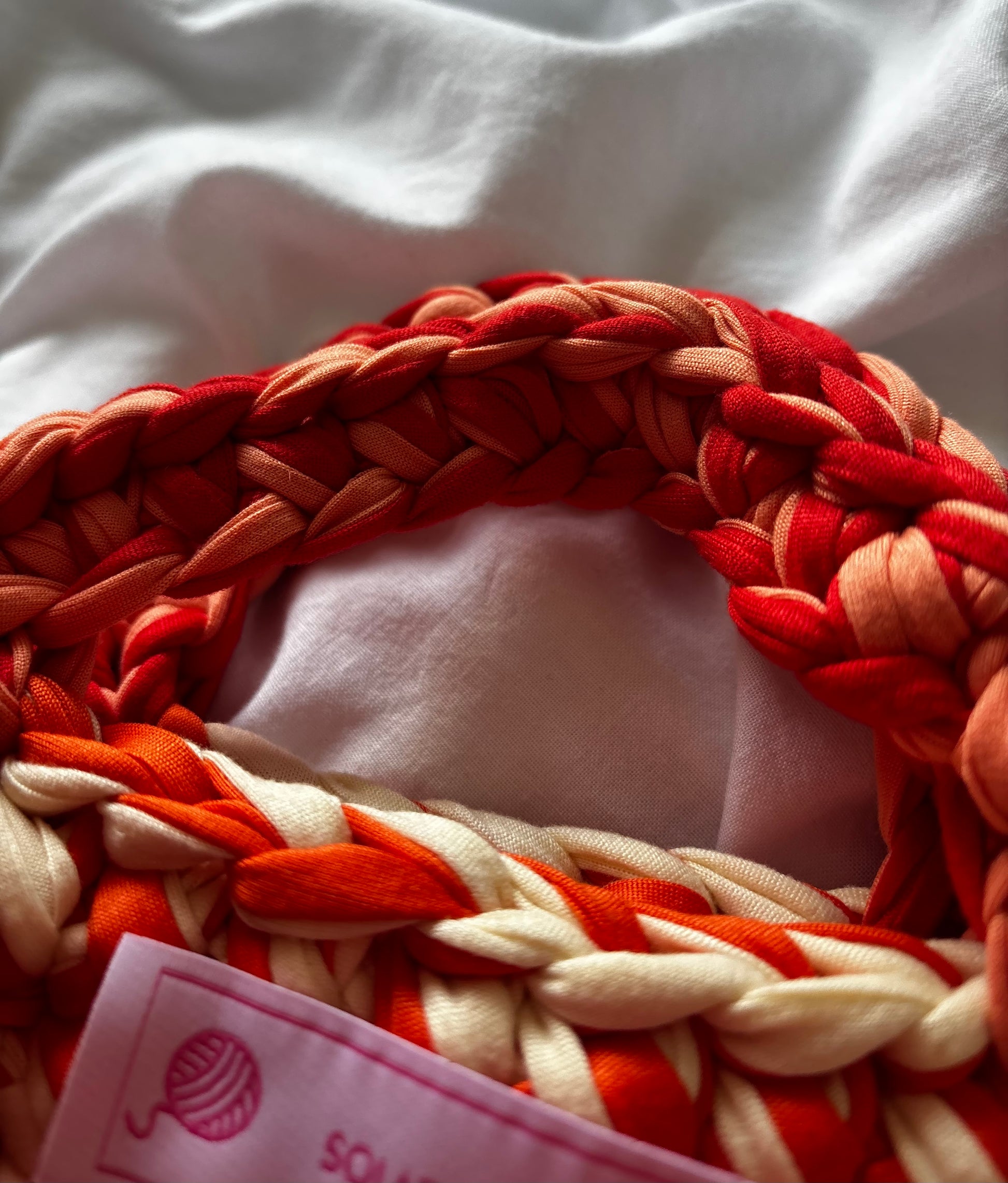 Handmade using eco-conscious T-shirt yarn, Fiesta Flame is soft yet sturdy, perfect for long summer days, spontaneous beach trips, and nights that turn into mornings. Whether you’re strolling through a market, heading to a gig, or jetting off on holiday, this bag turns heads and sparks joy. 💃✈️