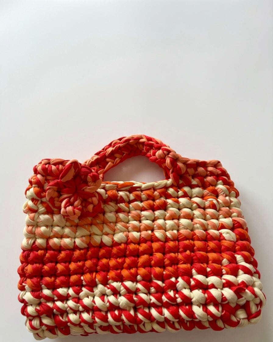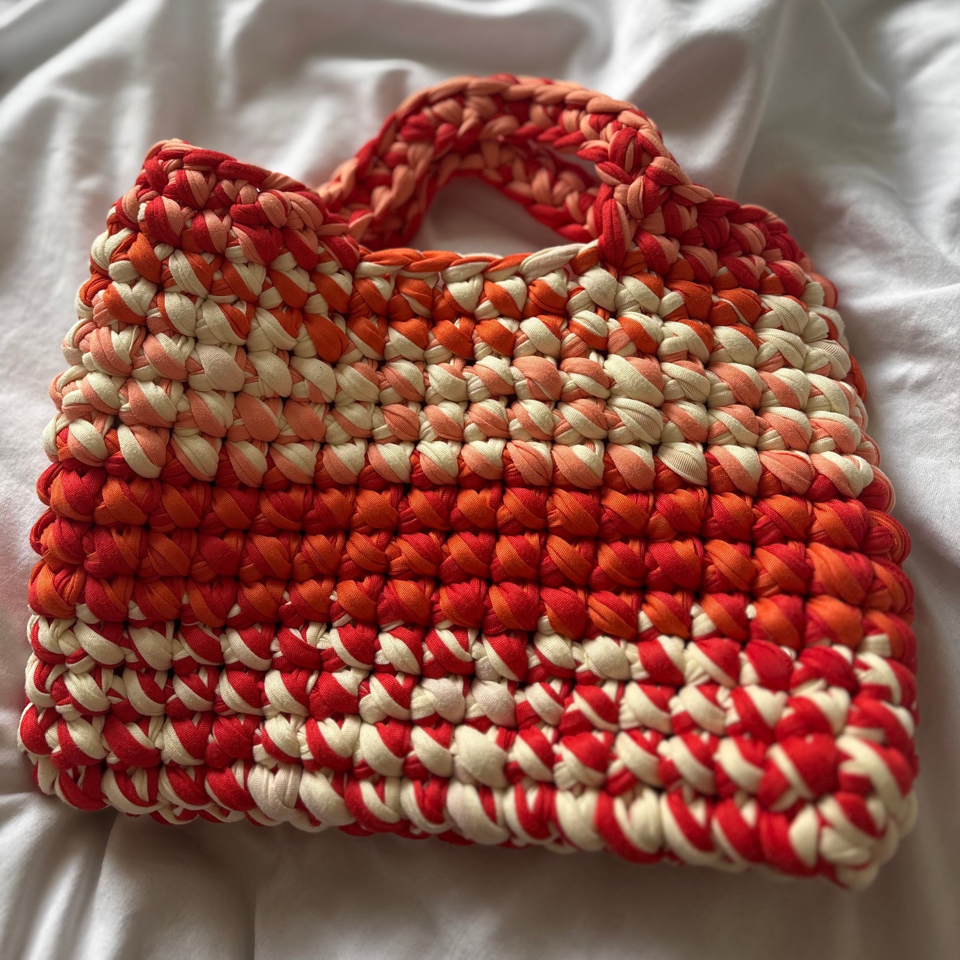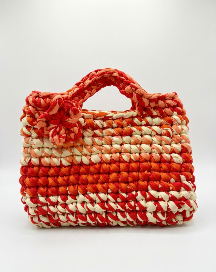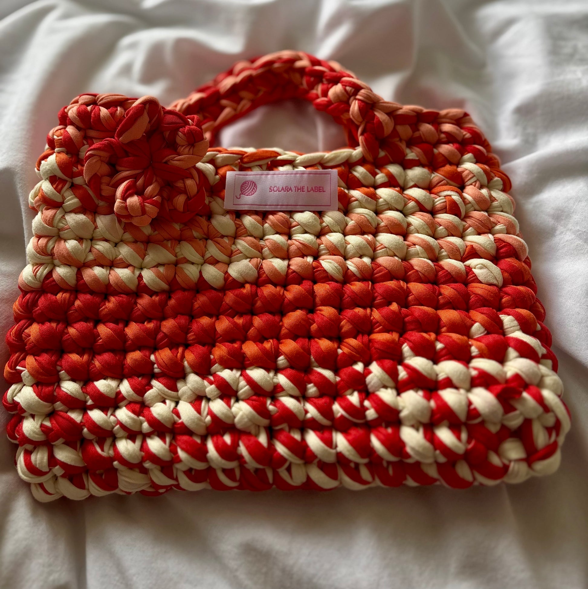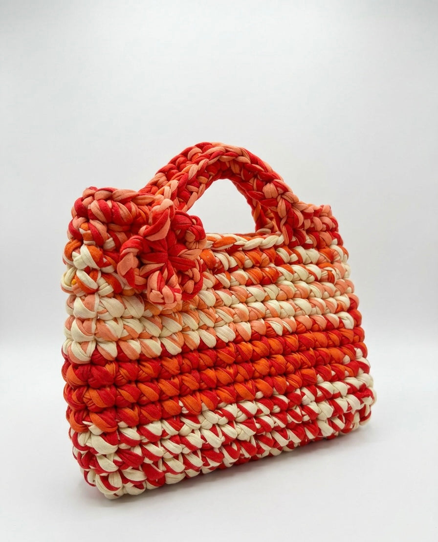 Handmade using eco-conscious T-shirt yarn, Fiesta Flame is soft yet sturdy, perfect for long summer days, spontaneous beach trips, and nights that turn into mornings. Whether you’re strolling through a market, heading to a gig, or jetting off on holiday, this bag turns heads and sparks joy. 💃✈️