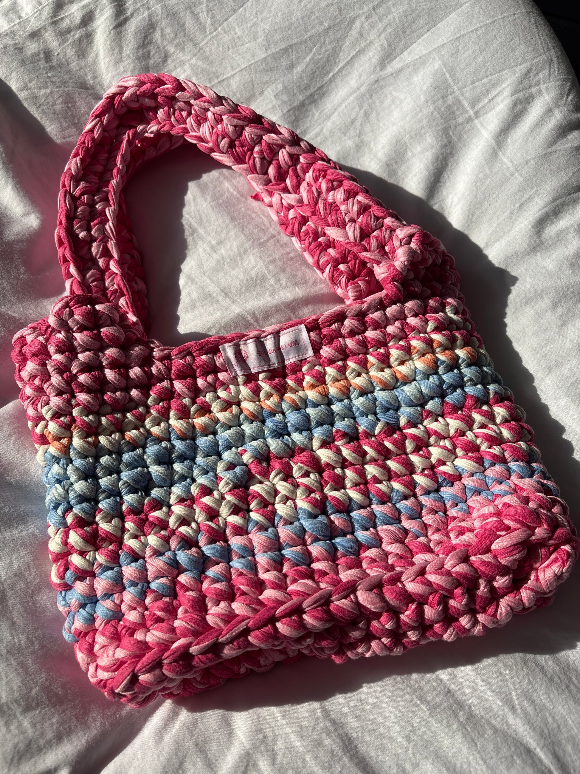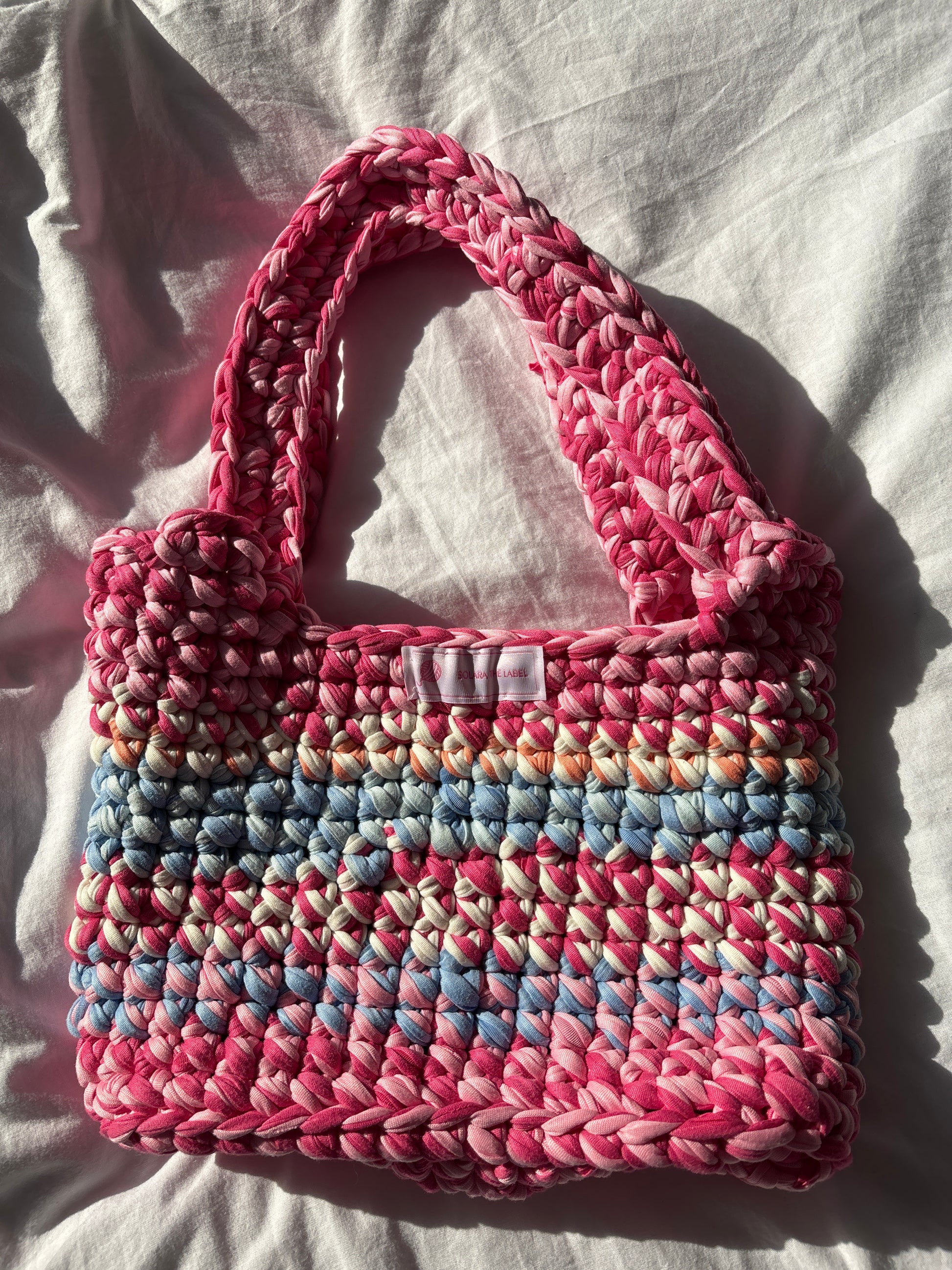 A splash of sweet and a whole lot of sunshine. The Tutti Coasti bag is hand-crocheted with vibrant T-shirt yarn in candy pinks, seaside blues, and soft cream β a dreamy combo inspired by gelato shops and golden hour strolls along the coast. ππ¦