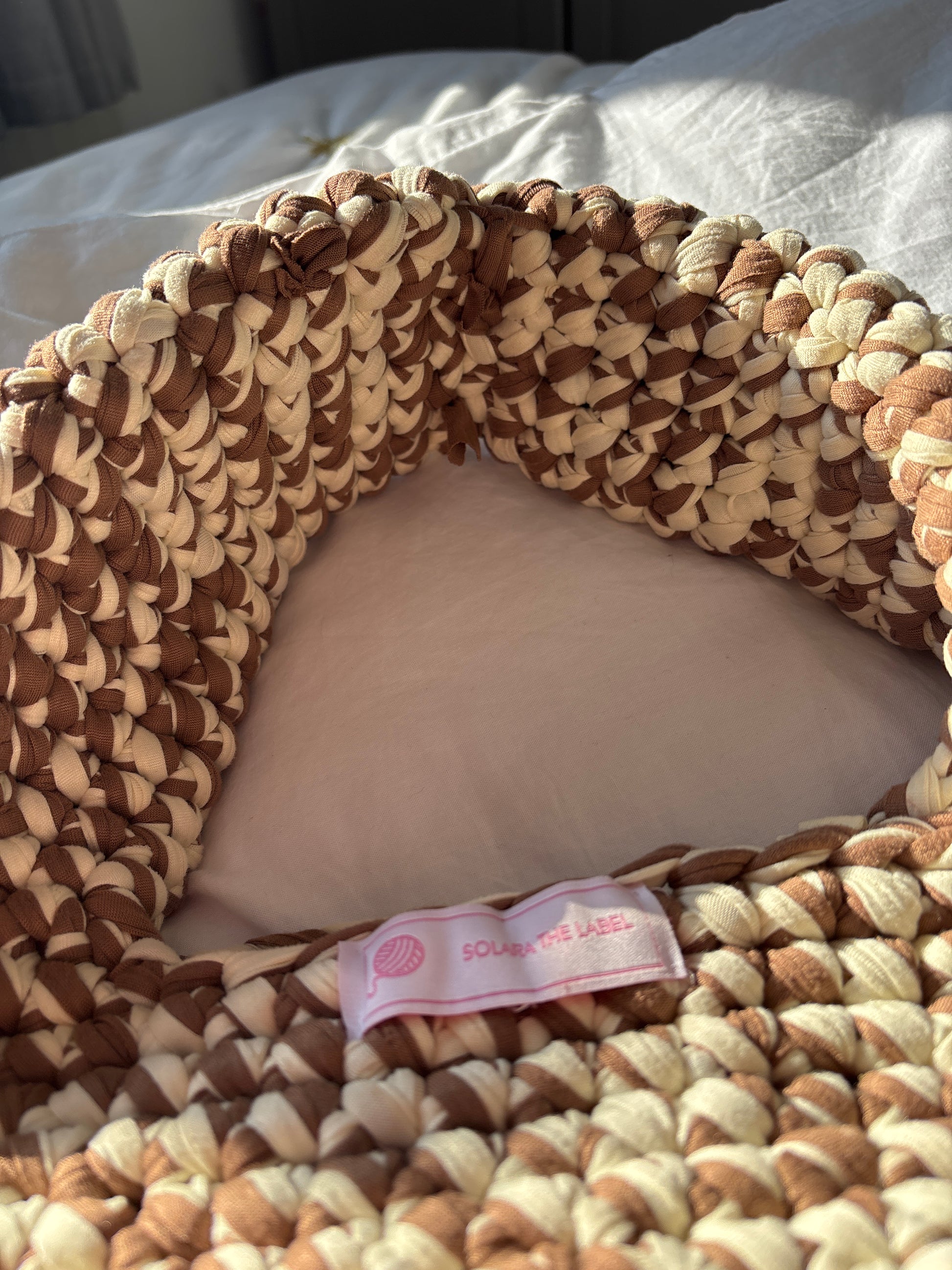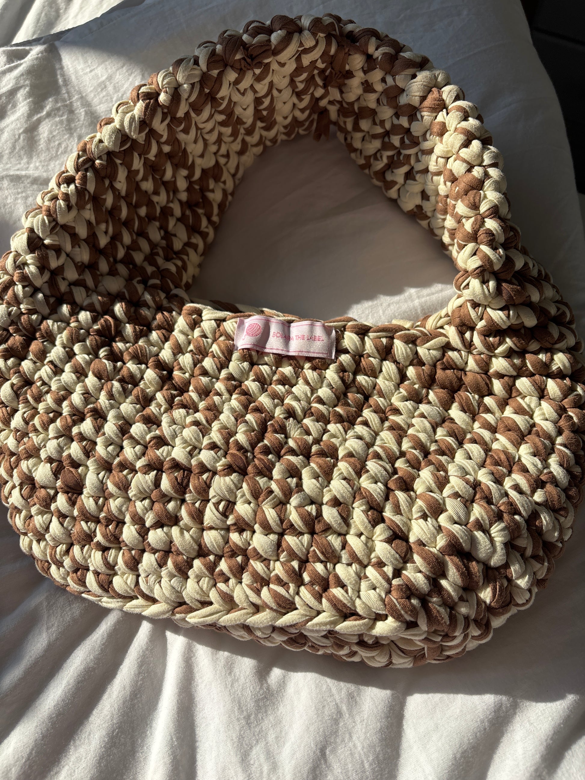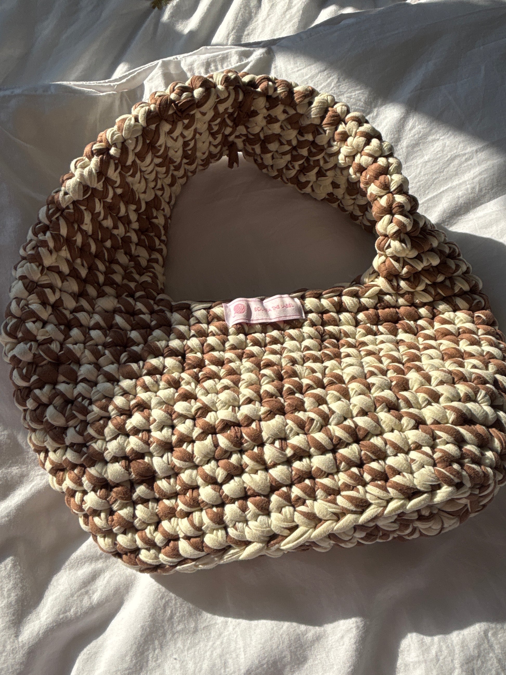 Earthy, effortless, and made for golden hour. Sundune is hand-crocheted in soft cream and sandy brown tones, inspired by desert strolls, barefoot beach walks, and sun-kissed Ibiza afternoons. With its relaxed shape and neutral palette, it’s your go-to for calm, coastal style. 🌞🧶
